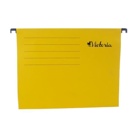 Függőmappa, karton, A4, VICTORIA OFFICE, sárga -magas minőségű újrahasznosított manila karton alapanyag -műanyag címketartó -225 g/m2 karton -A4 méretű dokumentumok tárolására -a színek megkönnyíti a rendszerezést -feliratozható, vonalazott felület -6