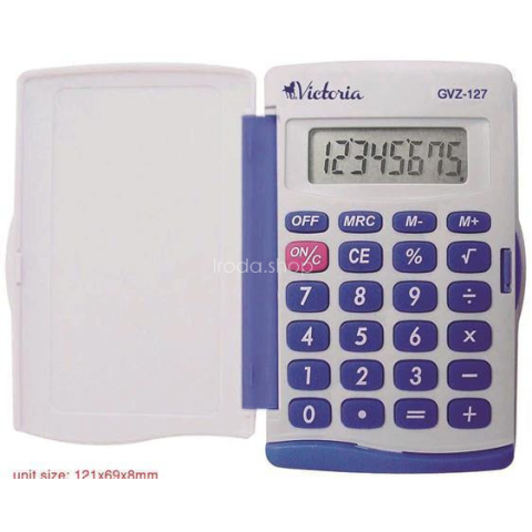 Zsebszámológép, 8 számjegy, VICTORIA OFFICE, GVZ-127 - 8 számjegyes kijelző - kemény fedél - memória - gyökvonás - százalékszámítás - automatikus kikapcsolás - gumi gombok - méret: 57x94x9 mm - 1 db 1,55 V-os (LR 1130-as) gombelemmel működik (t