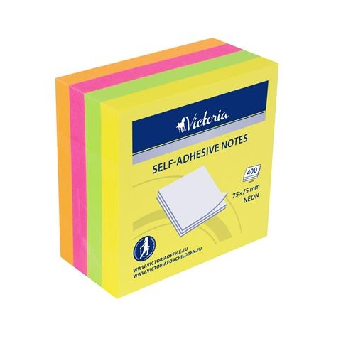 1 kép VICTORIA öntapadó jegyzettömb, 75x75 mm, 400 lap, victoria, neon