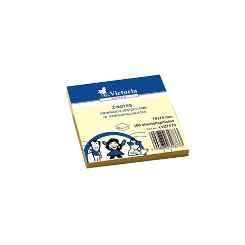 1 kép VICTORIA Öntapadó jegyzettömb, "Z", 75x75 mm, 100 lap, VICTORIA, sárga