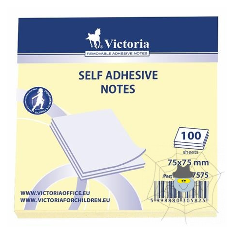 VICTORIA sárga öntapadós jegyzettömb - 75x75 mm - 100 lap/tömb