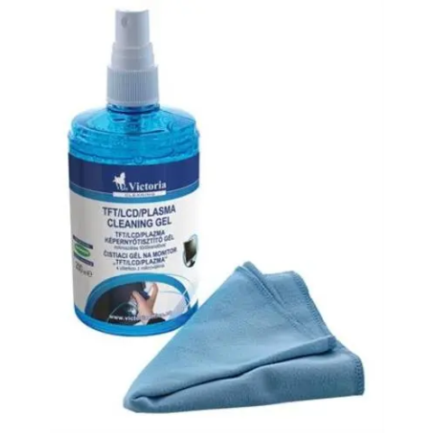 A Tisztítófolyadék, képernyőhöz, pumpás, kendővel, 200 ml, VICTORIA TECHNOLOGY (TTIVGEL) képernyőtisztító folyadék pumpás spay kivitelben nem maszatol, antisztatikus nem gyúlékony, alkoholmentes biztonsággal használható a különféle képernyőkön (felmeleged