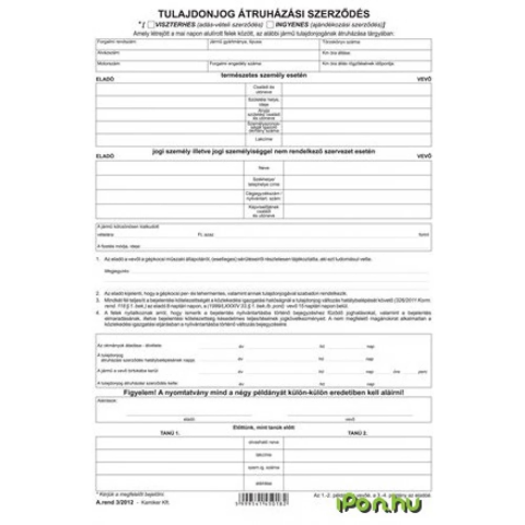 1 kép VICTORIA Tulajdonjog átruházási szerződés A/4, 4 pld. (Adásvételi szerződés gk)