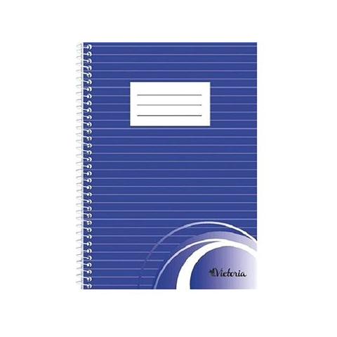 Jegyzetfüzet - A5 formátum, 70 lapos, vonalas papír, gyűrűs gerinccel, kék kivitel A VICTORIA A5 klasszikus vonalas jegyzettömb nélkülözhetetlen segítség amikor információkat jegyzel fel. A notesz 70 lapos, így hosszú ideig kitart, drótspirállal összefűzött. Fehér színű, kék borítás