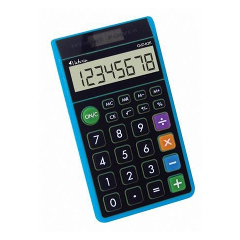 - - színes ház - 8 számjegyes kijelző - kétféle áramforrás (elem + napelem) - memória - gyökvonás - százalékszámítás - automatikus kikapcsolás - méret: 11x6,5 cm - 1 db 1,55 V-os gombelemmel (tartozék) + napelemmel működik