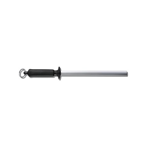 Fenőacél - segítségével élezhető anyagok acél, fenési szög 20°, élezőfelület hossza 26 cm, nyél anyaga műanyag, teljes méret 38,8 × 4,7 × 2,5 cm (H×Sz×Ma) A svájci Victorinox márka ovális gyémánt késélezője praktikus, ütésálló anyagból készült fogantyúval és akasztógyűrűvel rendelkezik. A konyhai késélező ipari gyémántból készült 26 cm hosszúságú élezőf