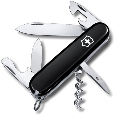 Svájci bicska - multifunkciós, a felszerelés része csavarhúzó, kulcstartó, krimpelő, konzervnyitó, fogpiszkáló, csipesz, palacknyitó, dugóhúzó és lyukasztó, bezárt kés hossza 9,1 cm A Victorinox Spartan svájci bicska egy praktikus és multifunkcionális eszköz, amely a Victorinox legkedveltebb és leggyakrabban használt zsebkései közé tartozik, és egyfajta klasszikusnak számít. Fels