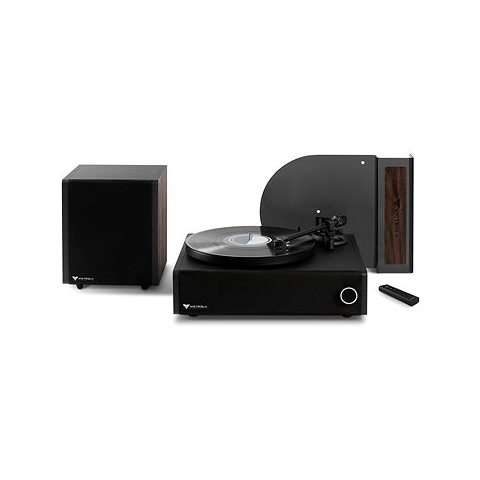 Lemezjátszó - modern dizájn, fa, hangszórókkal, fedővel, hangerő szabályzás, rezgésálló, beépített előerősítő, sebesség 33,3 és 45 fordulat/perc, Hi-Fi, szíjas hajtás, félautomata vezérlés, egyenes szárú kar, Bluetooth, MP3 lejátszó, RCA kimenet, fejhallgató kimenet, elektromágneses (mm/mc) hangszedő, távirányító, slipmat alátét és átalakító 45 fordulat/perchez a csomagban, tömege 6,15 kg, méretek 200 × 380 × 420 mm (Ma×Sz×Mé), fekete és barna ki