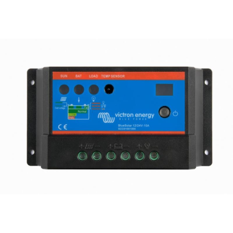 BlueSolar PWM BlueSolar 12/24-PWM: 5 A 12 V vagy 24V mellett • Olcsó PWM-töltésvezérlő • Belső hőmérséklet-érzékelő • Három-ütemű akkumulátortöltés (nagyáramú, abszorpciós, csepptöltés) • Túláram ellen védett • Rövidzár ellen védett • A napelemek és