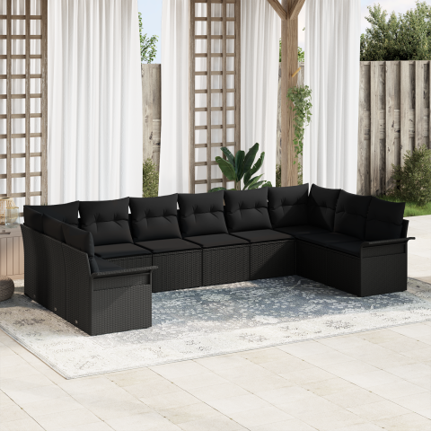 Teljes vidaXL 10 Darabos Kerti Kanapé Szett Párnákkal Fekete Poli Rattan termékleírás