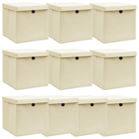 Teljes vidaXL 10 db krémszínű szövet tárolódoboz fedéllel 32 x 32 x 32 cm termékleírás