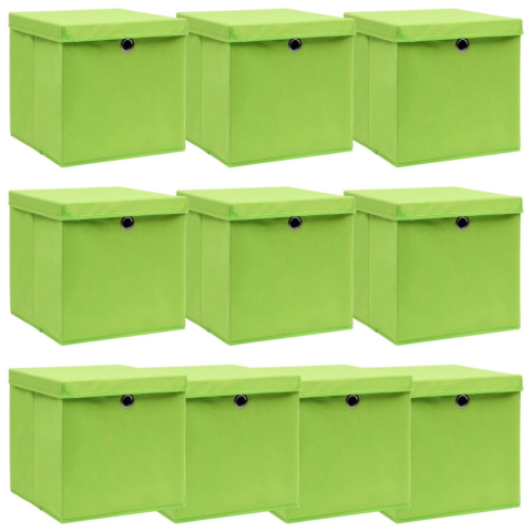 Teljes vidaXL 10 db zöld szövet tárolódoboz fedéllel 32 x 32 x 32 cm termékleírás