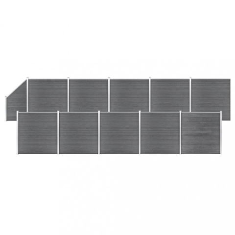 Teljes vidaXL 10 négyszögletes és 1 ferde szürke WPC kerítéselem 1830x186 cm termékleírás