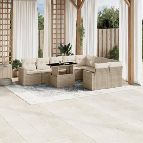 1 kép vidaXL 10 részes bézs polyrattan kerti ülőgarnitúra párnával