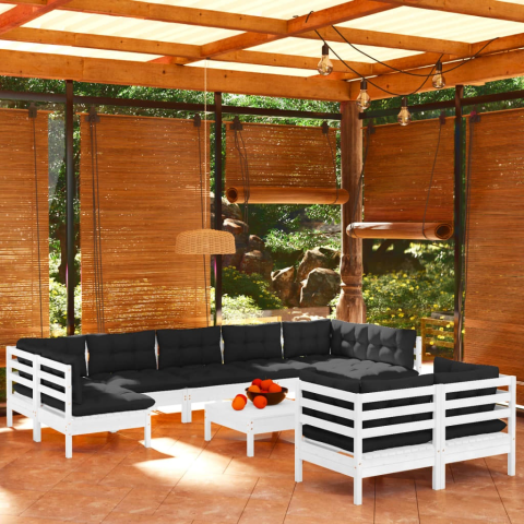 Teljes vidaXL 10 részes fehér tömör fenyőfa kerti ülőgarnitúra párnákkal termékleírás