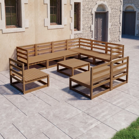 Teljes vidaXL 10 részes mézbarna tömör fenyőfa kerti ülőgarnitúra termékleírás