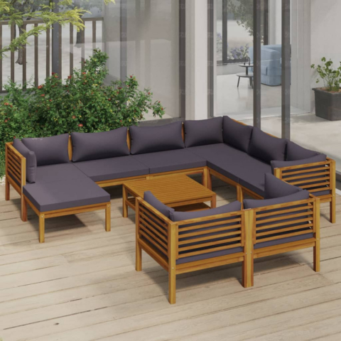 Tedd fel kérdésed a(z) vidaXL 10 részes tömör akácfa kerti ülőgarnitúra párnával termékről!