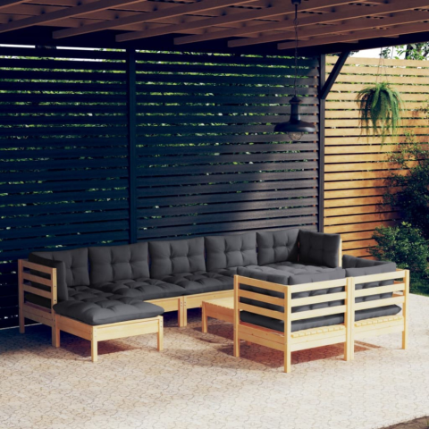 1 kép vidaXL 10 részes tömör fenyőfa kerti ülőgarnitúra szürke párnákkal