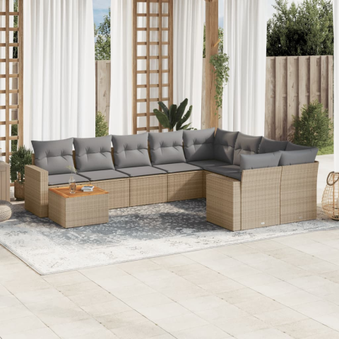 1 kép vidaXL 10 részes vegyes bézs polyrattan kerti ülőgarnitúra párnákkal
