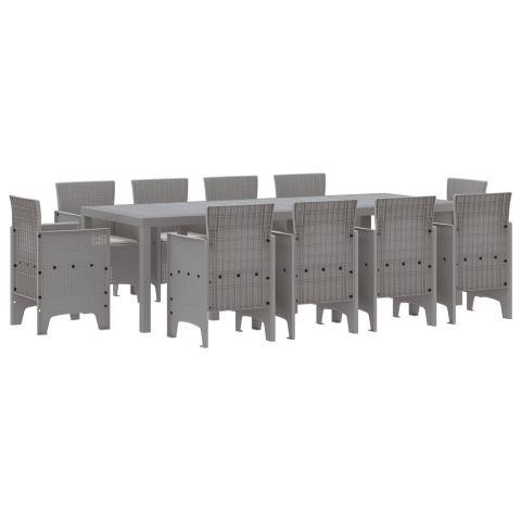 1 kép vidaXL 11 Darabos Kerti Étkező Szett Párnákkal Világosszürke Polirattan (3378609)
