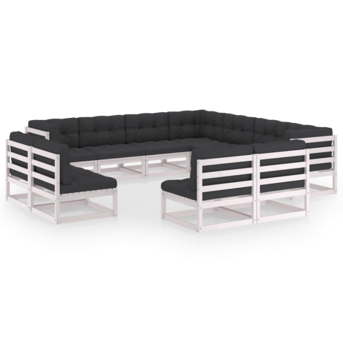 Teljes vidaXL 11 részes fehér tömör fenyőfa kerti ülőgarnitúra párnákkal termékleírás