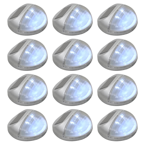 1 kép vidaXL 12 db kerek ezüstszínű kültéri napelemes LED falilámpa