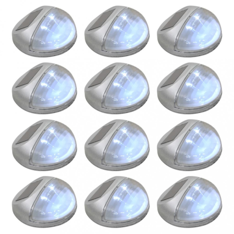 vidaXL 12 db kerek ezüstszínű kültéri napelemes LED falilámpa kültéri világítás árgrafikon