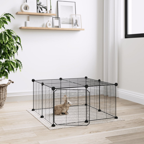 1 kép vidaXL 12 paneles fekete acél kisállatketrec ajtóval 35 x 35 cm