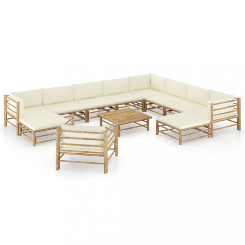 1 kép vidaXL 12 részes bambusz kerti bútorszett krémfehér párnákkal