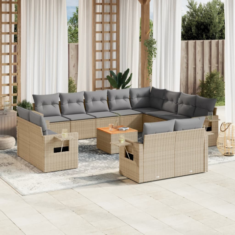 1 kép vidaXL 13 részes bézs polyrattan kerti ülőgarnitúra párnákkal