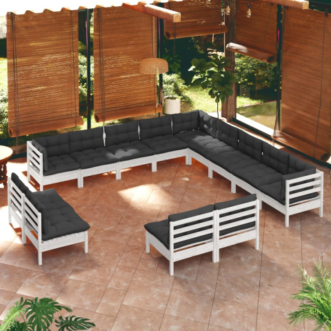 Teljes vidaXL 13 részes fehér tömör fenyőfa kerti ülőgarnitúra párnákkal termékleírás