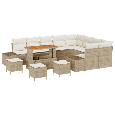 1 kép vidaXL 13 részes kertkanapé szett párnákkal bézs poli rattan akáccal (3362831)