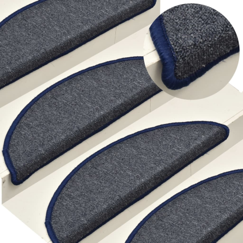 1 kép vidaXL 15 db sötétszürke és kék lépcsőszőnyeg 56 x 17 x 3 cm