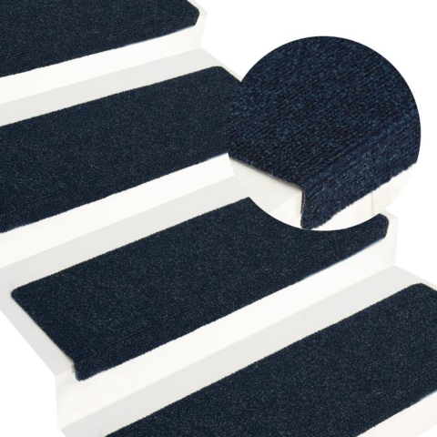2 kép vidaXL 15 db tűvel lyuggatott kék szövet lépcsőszőnyeg 65 x 25 cm