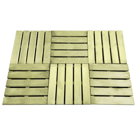 Helyezzen gyönyörű fából készült padlót kertjébe, teraszára vagy a medence mellé 18 darabos burkolólapszettünk felhasználásával. A padlólapok impregnált fenyőfából készültek, ami környezetbarát, strapabíró, időjárásálló és nem korhad. A fa gyönyörű erezete rusztikus bájt sugároz és minden darabot egyedivé varázsol. A szállítmány 18 db burkolólapot tartalmaz. Figyelem: a fa egy természetes anyag, így lehetnek rajta tökéletlenségek.