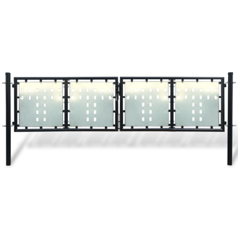 Ez a kerítés kapu praktikus és modern kialakítású bejárat lehet kertje és a külvilág között. Rendkívül stabil és strapabíró, így biztonságos válaszfalat kínál a kerthez, a belső udvarhoz vagy akár a teraszhoz. A dekoratív lyukakkal ellátott horganyzott lemezek megerősítik a vázat, így az általunk kínált kerti kapu rendkívül ellenálló és nagyfokú biztonságot nyújt, emellett pedig meseszép bejárata lehet otthonának. Strapabíró acélból készült, pors