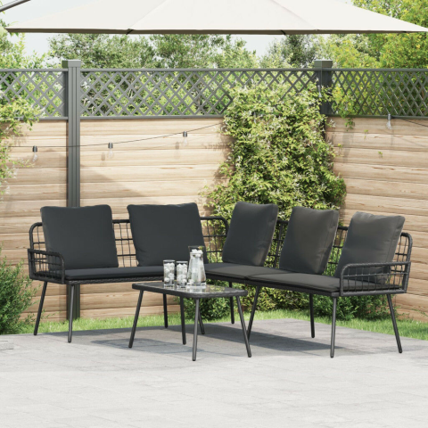 Kertbútor szett: Pihenésre tervezve ☀️ Ez a stílusos és kényelmes 2 részes kertbútor szett tökéletes választás a teraszra vagy a kertbe. Élvezze a szabadban töltött időt a családjával és barátaival ebben a modern, fekete polyrattán bútorban. Jellemzők...
