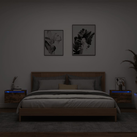 Teljes vidaXL 2 db fali füstös sonoma tölgy éjjeli szekrény LED fényekkel termékleírás