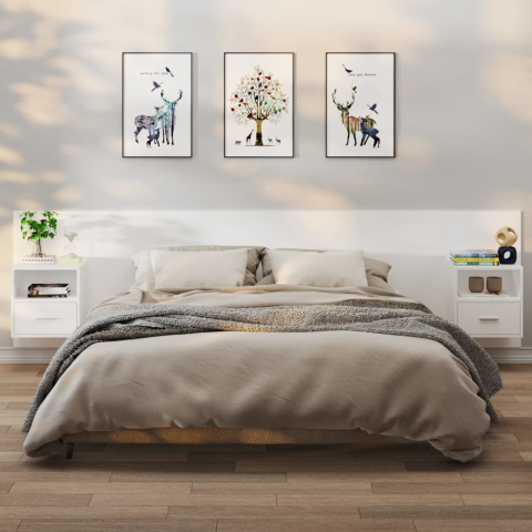 Teljes vidaXL 2 db fehér falra szerelhető szerelt fa éjjeliszekrény termékleírás