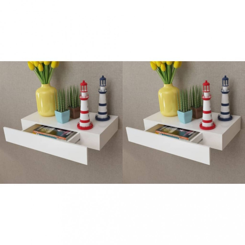 Teljes vidaXL 2 db fehér lebegő fali polc fiókkal 48 cm termékleírás