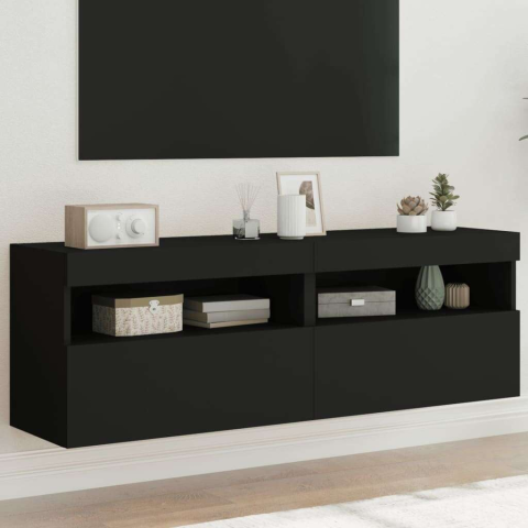 Teljes vidaXL 2 db fekete fali TV-szekrény LED-világítással 60x30x40 cm termékleírás
