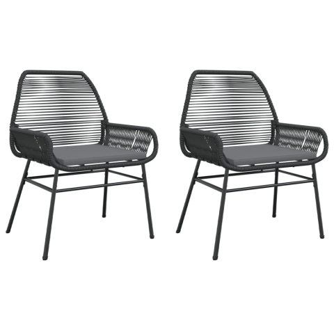 vidaXL 2 db fekete polyrattan kerti szék párnával