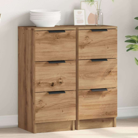 1 kép vidaXL 2 db kézműves tölgy színű szerelt fa tálalószekrény 30x30x70 cm