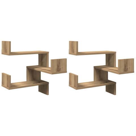 Teljes vidaXL 2 db kézműves tölgyszínű szerelt fa fali sarokpolc 40x40x49,5cm (856609) termékleírás
