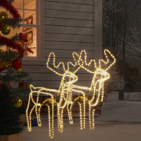 Ezek a szemet gyönyörködtető karácsonyi rénszarvasformák tökéletes választást jelentenek a kert vagy a nappali díszítésére. Időjárásálló anyag: A PVC-ből készült karácsonyi díszek acél vázzal rendelkeznek, így tökéletesen ellenállnak az időjárásnak az ünn