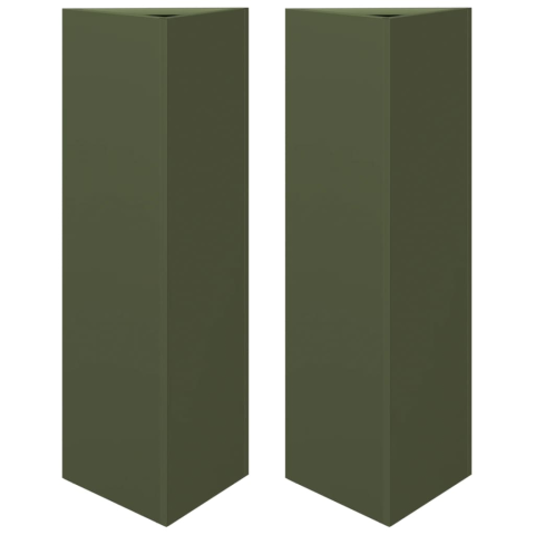 vidaXL 2 db olívazöld acél háromszög alakú kerti ültető 30x26x75 cm (851150)