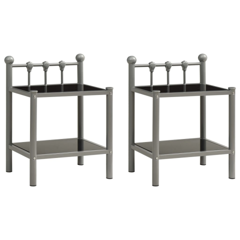 Teljes vidaXL 2 db szürke és fekete fém és üveg éjjeliszekrény termékleírás