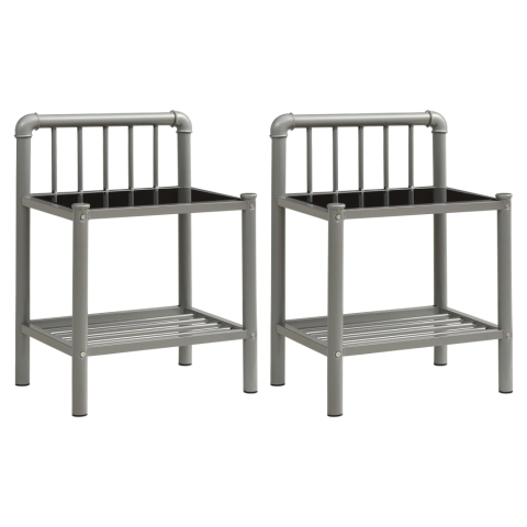 Teljes vidaXL 2 db szürke és fekete fém és üveg éjjeliszekrény termékleírás