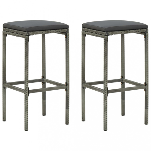 1 kép vidaXL 2 db szürke polyrattan bárszék párnával
