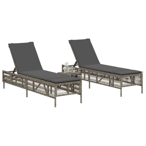 vidaXL 2 db szürke polyrattan napozóágy asztallal